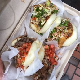 Decided to try this food truck while I was at the Bellevue Farmer's market today. I got the Chicken Karaage and a Pork belly bao. I had a feeling that I likely over ordered but I didn't realize by how much till I looked at the chicken. It's a decent price for an entree especially since the chicken karaage comes with a side salad. My biggest grip about it though is it left me wishing for more dressing on my salad. It just didn't feel like enough for me. The chicken was good and saucy enough for the chicken although not necessarily as much as I would have liked to go with rice. I don't necessarily recall karaage being that saucy but it was still good and they gave very big chunks of chicken. The pork belly bao was good but I don't think I liked it enough to order another.